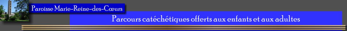 (pour les parcours suivants, cliquez sur le titre pour obtenir le formulaire d'inscription imprimable dans un nouvel onglet) Pour les 5 à 7 ans : parcours « Éveil à la foi » : activités en lien avec la Parole de Dieu, éveil à la dimension spirituelle de leur être. Pour les 7-8 ans : « Laisse-moi te raconter 1 » Approche biblique : L'amour et la vie selon Jésus Pour les 9-10 ans : « Laisse -moi te raconter 2 » Approche biblique : La vie fraternelle selon Jésus. Parmi ces parcours sont insérées les préparations du baptême pour les enfants d'âge scolaire, le sacrement du Pardon et le sacrement de l'Eucharistie. Pour les 10-11 ans en cheminement vers la Confirmation : Parcours : « Au fil des saisons » et aussi « l'amour en fête » Approche contextuelle : apprentissage de la vie quotidienne en lien avec la rencontre de Jésus et ses témoins en vue d'un accroissement de leur foi chrétienne. Pour les 11-12 ans en préparation spécifique à la Confirmation : « L'amour en fête » : Approche biblique et liturgique : Célébrer ma vie avec Jésus. L'accent est mis sur le volet liturgique (les rituels, les lieux sacrés, les symboles, les sacrements, les jeunes découvrent les diverses manières de célébrer leur vie en lien avec Jésus. « Libre et responsable » : en chemin vers la confirmation, catéchèse qui invite les jeunes à conduire leur vie à la lumière de l'évangile pour une profession de foi responsable et bien éclairée et ce cheminement peut être proposé aux adolescent(e)s. Un autre chemin pour les adolescents « Quand les adolescents demandent à plonger » proposé par l'Office de catéchèse du Québec. Pour les 11 ans et plus qui n'ont aucune initiation chrétienne : « En route avec Jésus »